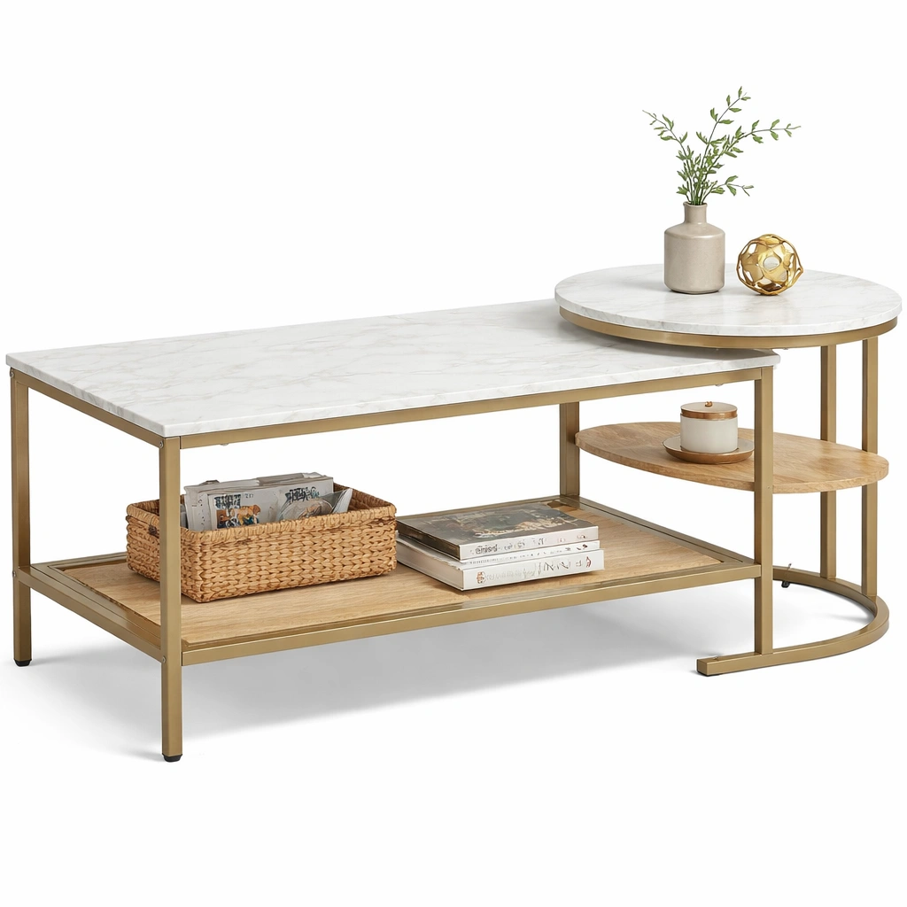 Moderner minimalistischer Couchtisch aus Glas | Gestell aus Massivholz und Marmor
